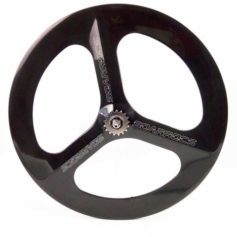 सोयरॉस 700c 23 मिमी चौड़े क्लिचर ट्यूबलर त्रिकोणीय ट्रैक साइकिल चक्र कार्बन 3 स्पोक व्हील डिस्क ब्रेक फिक्स्ड गियर 15t 16t 17t